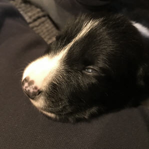 Rüde, Stockhaar, schwarz / weiss, Geburtsgewicht 312 gr. / Geb. Datum 5.4.2021 (6.4.2021), Zeit 00.51 Uhr