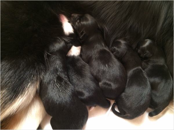 Den Welpen und Jean geht es soweit gut und sie haben sich auch schon gut von der Geburt erholt. Es sind 2 Hündinnen und 3 Rüden.